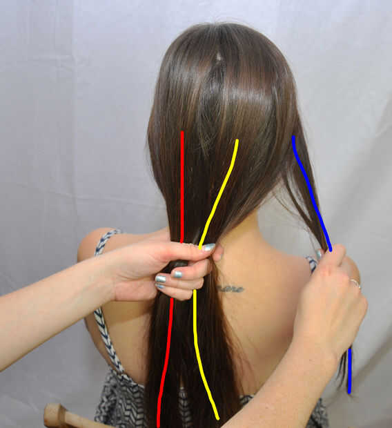 - Separar el cabello en dos secciones (rojo) y (amarillo)