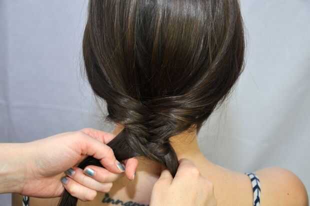 Cómo hacer una trenza de espina de pescado básico (3 / 4 paso)