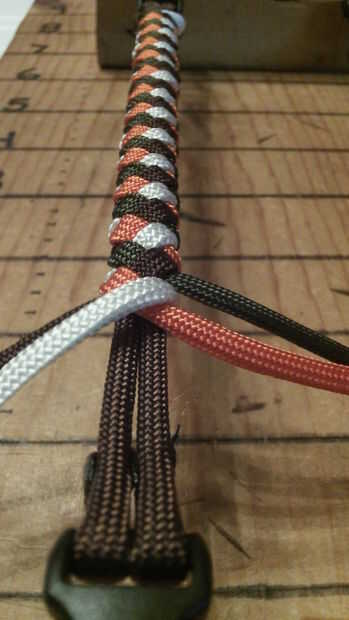 Cómo hacer una trenza de Paracord de 4 filamento con un núcleo y una hebilla. (10 / 14 paso)