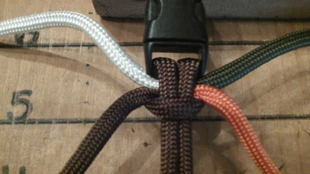 Cómo hacer una trenza de Paracord de 4 filamento con un núcleo y una hebilla. (5 / 14 paso)