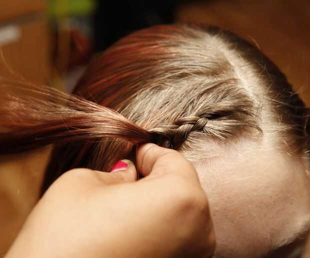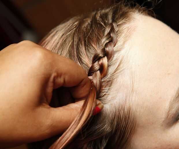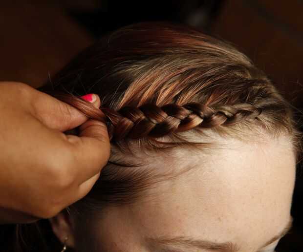 Ahora se mueven detrás de la persona que está haciendo el peinado para que pueda ver claramente lo que está haciendo. Sigue tomando el pelo desde la parte superior de la cabeza a la trenza. Para el otro lado, no agarrar el pelo de la parte inferior de la cabeza, coge sólo lo que está debajo de la trenza que le va donde quiere. Que pelo será alimentado en la trenza una vez gire otra vez y llevarlo alrededor (esto le dará una forma de "S").