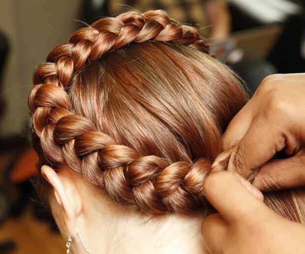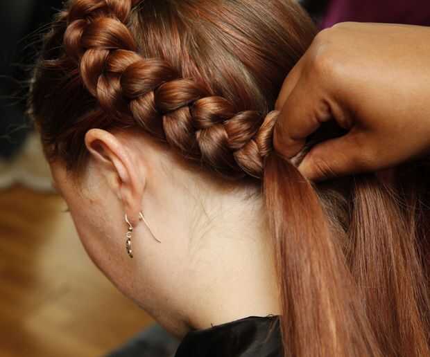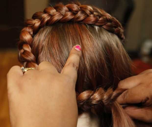 Continuar la trenza hasta llegar al otro lado de la cabeza (no aparezca la trenza). Mantenerlo suelto. Al llegar al final, hacer una trenza tradicional 3 cordones, 3 vueltas, luego oprima los 3 hilos tenso. No absolutamente todavía a terminar la trenza.