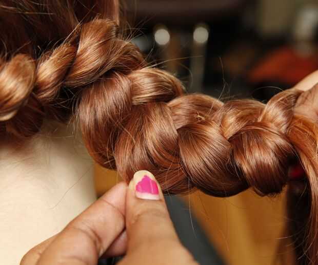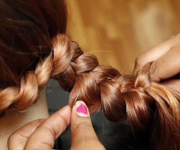 Una vez que han aflojado la trenza en la cabeza, puede continuar la trenza en el final. Como vas, afloje la parte externa de la trenza (la parte más cercana al centro de la parte posterior de la cabeza). Este lado de la trenza será los pétalos y esto dará la dimensión de la flor.