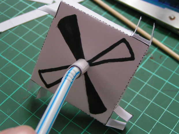 Podría hacer uno de dos círculos de la tarjeta y añadir paletas curvas entre.