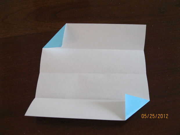 5.) pliegue la parte superior e inferior de los bordes a la línea de doblez del centro.