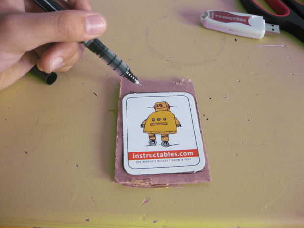 Ahora obtener su cartón y la etiqueta (o imprimir) y colóquela sobre la cartulina. Para obtener el lápiz y trazar alrededor de la etiqueta engomada.