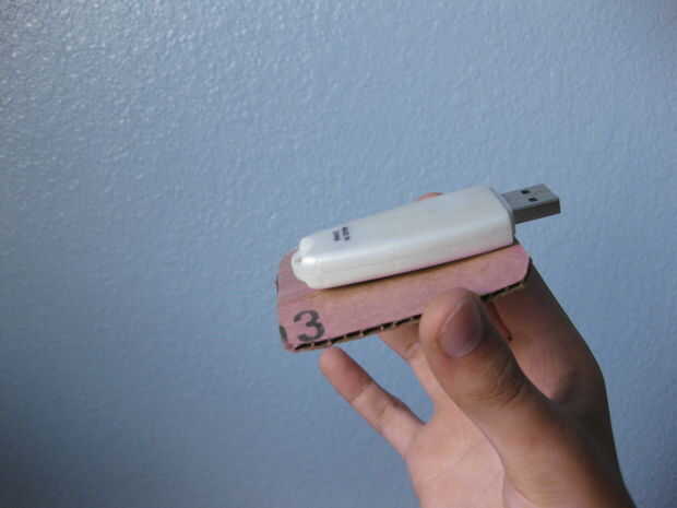 Obtener su cartón y aplique en el lado de hotglued de la impulsión del USB.