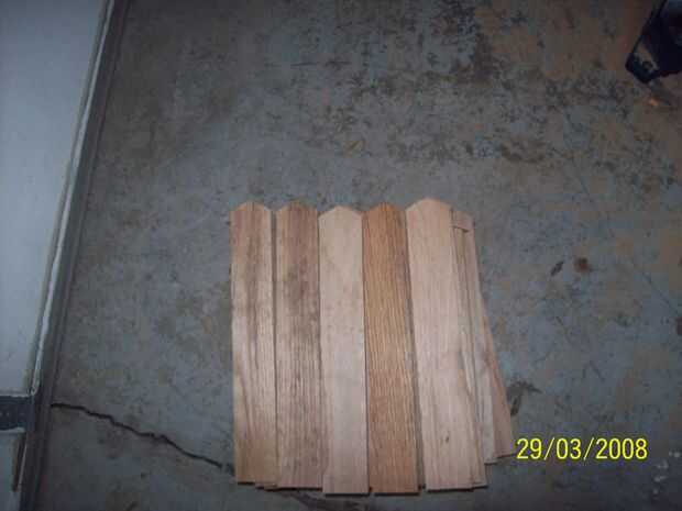 Obtener algunas placas. He usado izquierda sobre pisos de pinotea. Cortar a la anchura y la altura deseada. Hacer algo puntiagudo en la parte superior. Luego realizar un marco, puede utilizar cualquier tablas largas, he usado tablas de 1 x 2. (creo). Usé 2x4s para los que entraron en la tierra.
