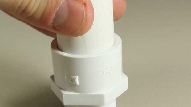 3. Pulse el 3/4" PVC tubo en el adaptador de deslizamiento hacia abajo lo suficiente que es firme y apretada, pero dejando espacio suficiente para que la bola a moverse un poco dentro.