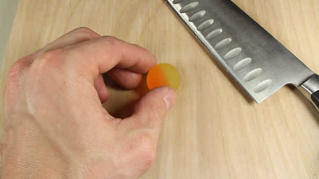 1. encontrar una 3/4 goma bola animosa y lentamente cortar la parte superior 1/3.