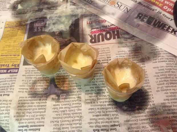 Después de esperar durante una hora, sacar los vasos del congelador. La mantequilla tendría que haber sido bastante sólida. Si todavía es un líquido, seguir adelante y esperar otra hora.