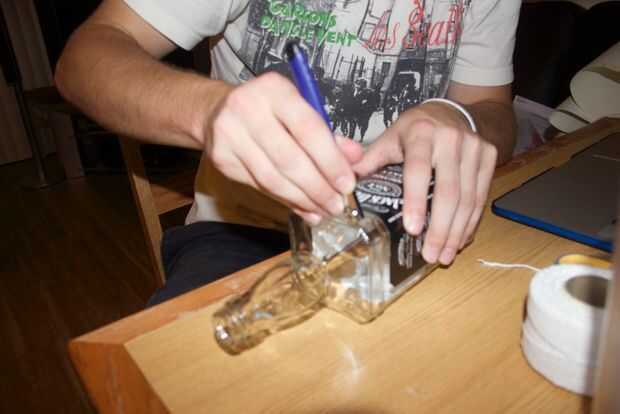 Marque una línea de puntuación (donde va a tomar la parte superior de la botella de en línea) en tu botella.