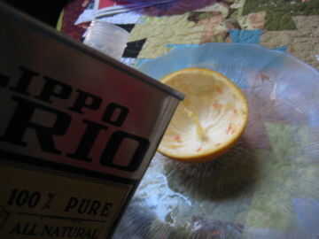 Paso 4: Verter el aceite de oliva en la naranja hasta se llena la mitad de la naranja.