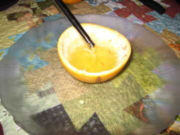 se trata de cómo hacer una vela orgánica con una naranja, y huele bienPaso 1: herramientas 1-naranja 2-encendedor/algo que puede hacer un fuego de aceite 3Paso 2: Cortar la naranja Tienen y naranja cortar la piel pero no las rodajas de naranja y lueg