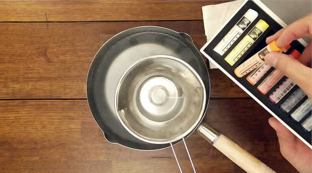 Afila el lápiz naranja y se mezcla la vela derretida.
