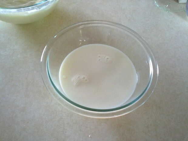 Llene el bol con la leche. (Conectar con su interior italiano y tomar una conjetura en lo que se ve bien. Si usted necesita ayuda extra; para un recipiente de tamaño moderado puede probar 2/3 llena.)
