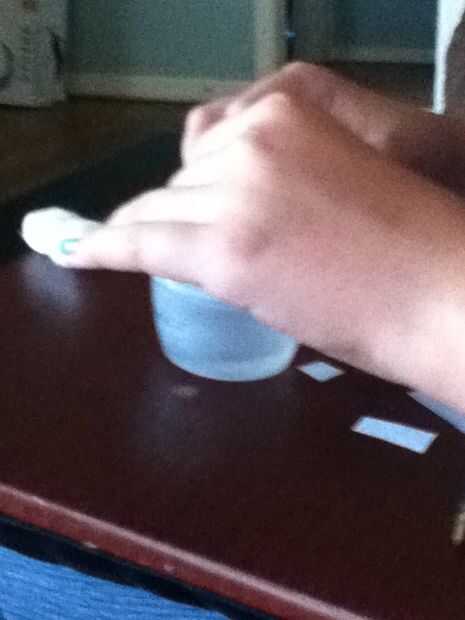 Pobre cuidadosamente el alcohol del frotamiento en su recipiente. El lugar de la partitura en las uñas y empape una bola de algodón en alcohol para fricciones. Frotar alcohol en la partitura mientras que es derecha abajo en sus uñas. Sostener el papel en lugar de un par de minutos y luego retire suavemente. Puede meterse hasta un par de veces, pero eso es aceptable. A pintar sobre la uña y vuelva a intentarlo después de que se seque. ¡¡¡Buena suerte!!!