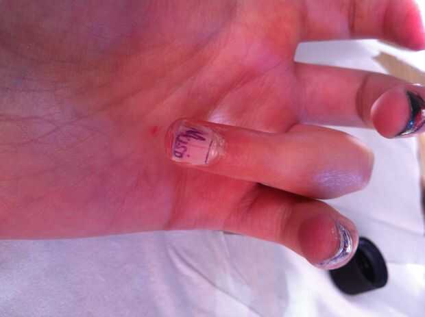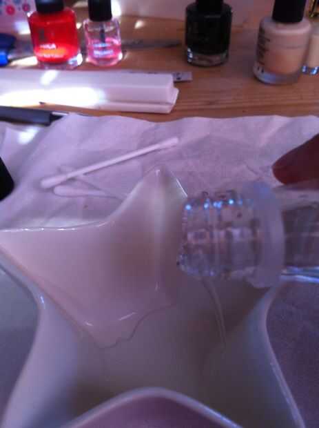 Cubrir la uña en el aceite, extraer el lugar el dibujo cara abajo en la uña y sosténgala allí 30secs entonces cuidadosamente de pelar y cubrir con una capa de esmalte transparente.