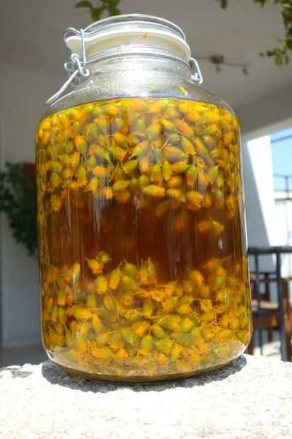 3. cerrar el frasco y dejar en un alféizar soleado durante 4-5 semanas. Agite el frasco periódicamente (sólo le dan una sacudida cada vez que pasas por). El aceite de oliva va a cambiar y se convertirá en un color dorado.