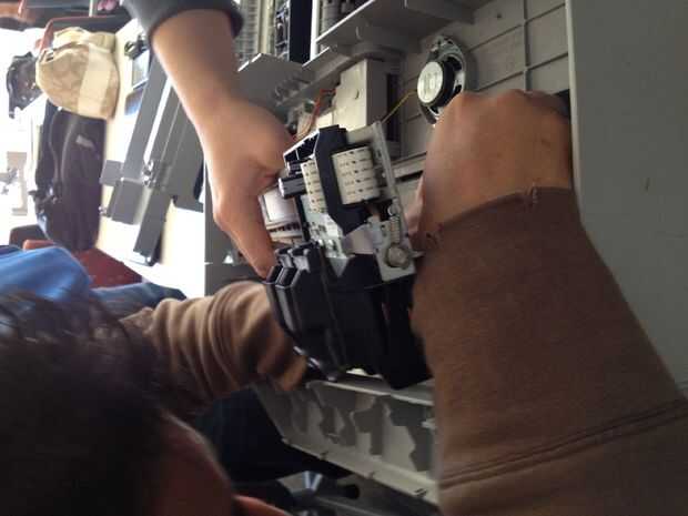 4. Desmontar el cabezal de impresión. Tenga cuidado al desenroscar para que no lastimará la barra de precisión y el motor que está conectado a la estructura de la unidad principal.