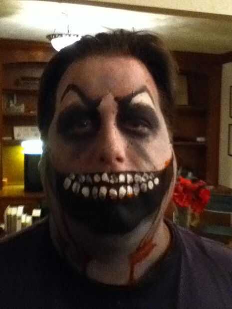ok así que ahora usted tiene o sabe qué materiales necesita. lo que tienes que hacer es limpiar tu cara. Muy bien. después de su secado y no tocar su cara. vas a necesitar ut los curitas sobre cualquier corte excepcional. después de que hayas hecho esto. Haz el maquillaje de payaso blanco, un aplicador de cuña y blanquear la cara y el cuello demasiado. luego haz aotras aplicador y su negro y hacer sombras alrededor de la nariz. ojos y boca y el cuello. Esto puede tomar varios intentos para ser paciente.