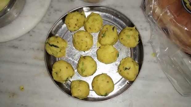 Rodillo hacia fuera pequeño a medio tamaño de bolas de la mezcla de puré de patatas. Aplanarlos un poco estas bolas. Tapar y mantener a un lado.