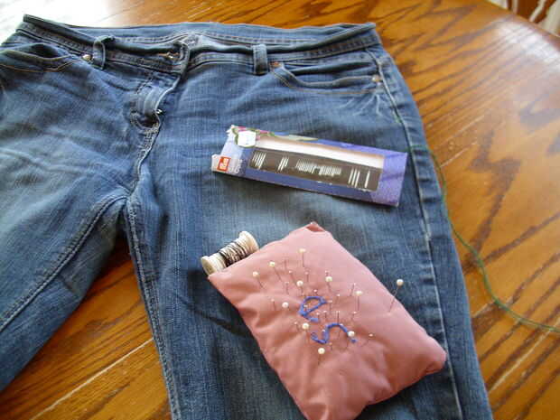 este es un proyecto muy fácil si tienes una máquina de coser costura básica.Materiales:Un par de jeans que le caben mucho antes de que estaba embarazadaUna camiseta que le cabe muy bien antes de que estuviera embarazada (tal vez incluso un tamaño dem