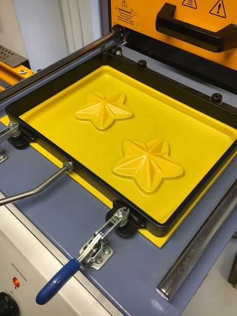 Utilice el molde que usted ha hecho sólo por el vacío que forma la máquina. Use algunos ISH de plástico de la máquina. Necesitarás 4 estrellas de plástico amarillo.
