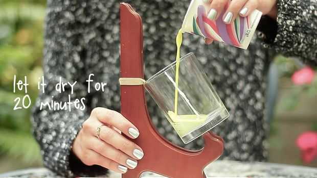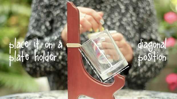 Instrucciones: Coloque el vaso en una posición diagonal y vierte la primera mezcla de cera de color. Déjelo secar por 20 minutos.