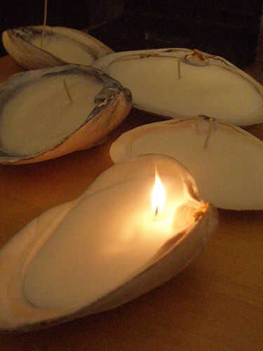 visité a mi amigo en su casa pequeña en el océano y recogen una tonelada de estos proyectiles sin realmente saber qué hacer con ellos cuando tengo casa, me di cuenta que eran del tamaño perfecto y la forma de unas velas caprichosas, románticas. Para agregar un toque bonito a cualquier habitación y haría grandes centros o favores en una boda.