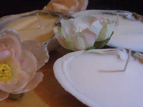 Una vez que la cera se ha solidificado, recortar las mechas a alrededor de un cuarto de pulgada y limpie cualquier cera que podría haber conseguido en la parte posterior de la concha.