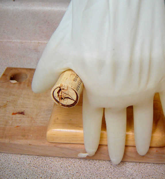 La cantidad de cera que se necesita depende del tamaño de guante que utilizas, puedes llenar un guante con agua y luego viértala en una taza de medir para obtener la cantidad correcta. Es una buena idea para derretir más de lo necesario en caso de que derrame. Coloque un plato o bandeja debajo de su guante para atrapar cualquier goteo o fugas. Derretir la cera en una olla en la estufa y luego Vierta lentamente en el guante. Una vez lleno lo cuelga en algún lugar que le permita establecer (mío colgado de un gancho de plátano). He puesto un tapón entre el pulgar y los dedos ya que el pulgar parece hundirse.