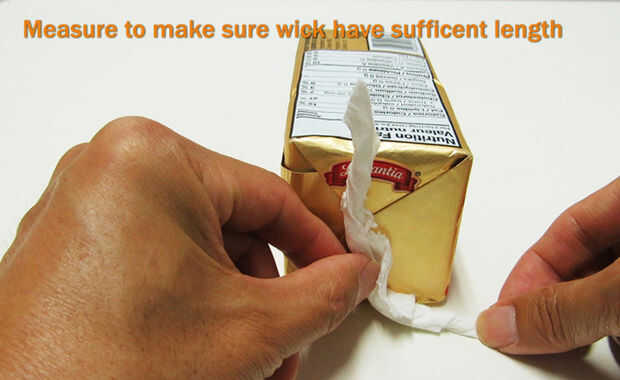 Mecha de lugar L forma de frente manteca, asegurar suficiente longitud por encima de la mantequilla