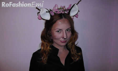 Maquillaje imitar bien apariencia de ciervo... Sombra de ojos marrón yo solía contorno de la cara y nariz, negro sombra y blush nariz blanco para imitar las manchas blancas en los ciervos de la piel.