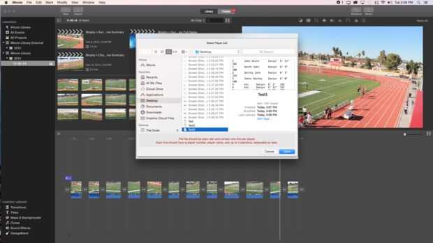Una vez que tengas el equipo en el editor ahora puede añadir jugadores. Resalte el nombre del equipo y haga clic en 'Importar lista de jugadores...' en la parte inferior de la zona de jugador. Seleccione el archivo que creó en TextEdit y haga clic en 'Abrir'. Los jugadores con su correspondiente información deben mostrarse en la zona de jugador. A continuación, puede Agregar una foto de cada uno. Destacar a un jugador y luego haga clic en el signo '+' en la caja de la foto junto a la zona de jugador. Seleccione la foto de ese jugador de iPhoto. Hacer esto para cada jugador.