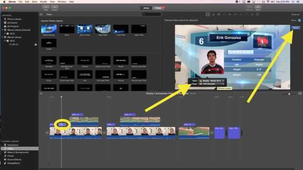 Añadir a continuación, que puede Agregar títulos. Emergente de los títulos sobre el vídeo e incluyen scorelines, información de jugador y otra información. Para cada entrevista de jugador, arrastre un título 'Estadísticas de jugador' en la parte superior del clip. Que tenga y haga doble clic en la barra que aparece, seleccione el reproductor adecuado en el menú desplegable en la pantalla de vista.