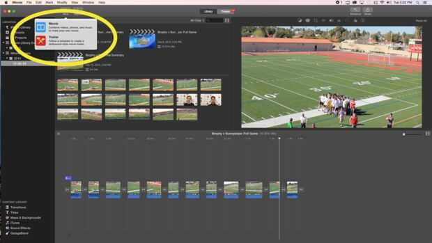 Ahora estás listo para hacer su película. Abra iMovie y seleccione New y luego la película. Una pantalla emergente aparecerá con varios temas. Elegir el tema de deportes.