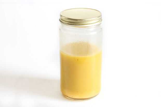 Tenga en cuenta que la vinagreta se separa bastante rápido, así que mejor tenerlo en un recipiente para la mezcla fácil.