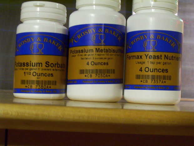 Metabisulfito de sodio/potasio - conserva el vino y permite a la levadura a crecer sin respuesta. Cuando se trabaja con la fruta fresca es necesario o si usted planea usar sorbatos. No necesita esto si el jugo es pasteurizado o comprado en la tienda. Sin embargo, si la tienes al lado de la carretera, te recomiendo usarlo. No USE si es alérgico a los SULFITOS $2,39