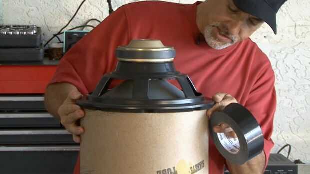 3. firmemente con cinta adhesiva el altavoz en un extremo del tubo.