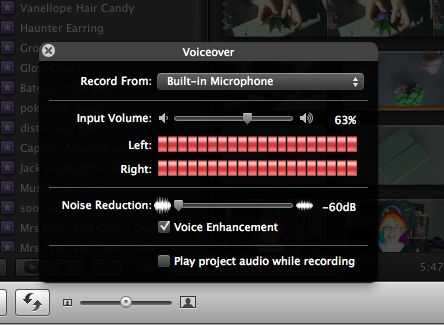 Una vez, haga clic en el micrófono el menú de Voiceover aparece. En este menú hay algunas opciones que son definitivamente vale la pena prestar atención.