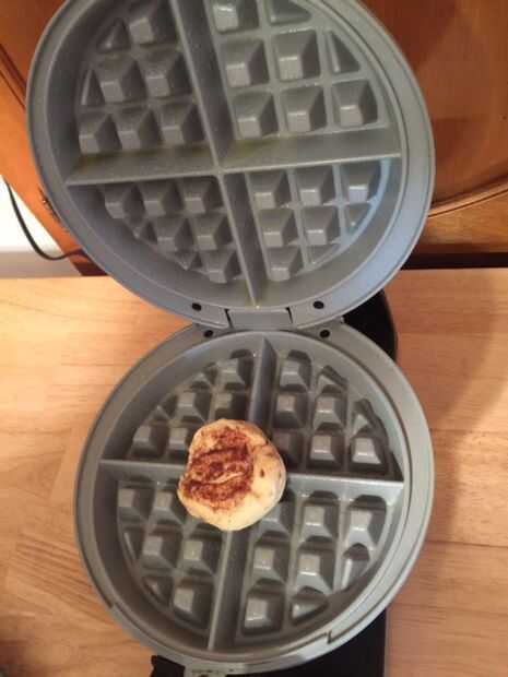 Poner un rollo de canela en el centro de la máquina de wafles y cerrarla rápidamente.