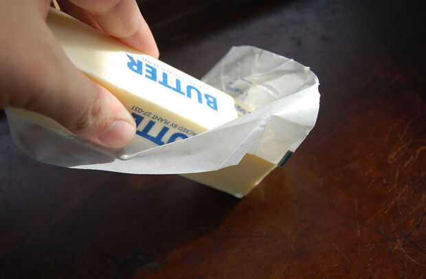 Precalentar el horno a 350° F. Mantequilla 2 galletas grandes para que los whoopie pies se deslizarán justo después de la cocción.
