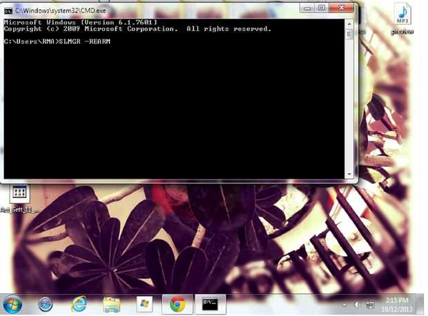 3. lo tienes! El símbolo del sistema puede utilizarse para varios propósitos diferentes. Les hablaré en mi siguiente ' ible. Ahora escriba el comando ''' SLMGR-REARM ''' en CMD como se muestra en la imagen. Una vez hecho esto, proceder al siguiente paso.