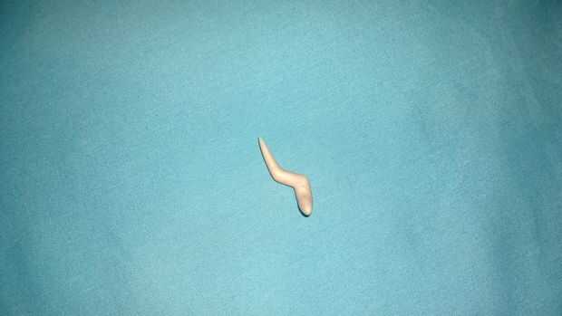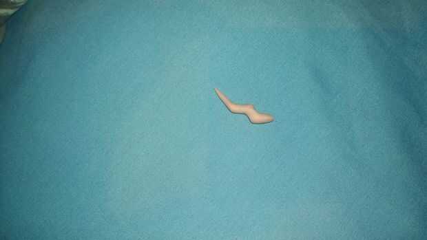 Para hacer un cuerno, que un trozo de arcilla y papel hacia fuera hasta sentir su suficiente luego doblar en 3 puntos diferentes como en mi foto, una vez que termines, doblar el cuerno en el punto medio hacia el lado para casi un ángulo de 90 grados. Una vez hecho esto solo integran la mandíbula. Tenga cuidado de no hacer demasiado gruesa. Hice un poco demasiado grueso e hicieron la mandíbula más amplia que debería haber sido, no realizarlo hasta que después de había lo había cocido se tuve que cortar algunas de ellas con el X-acto.