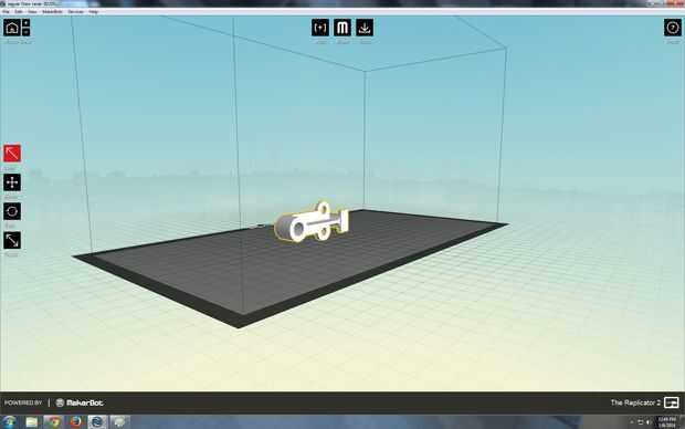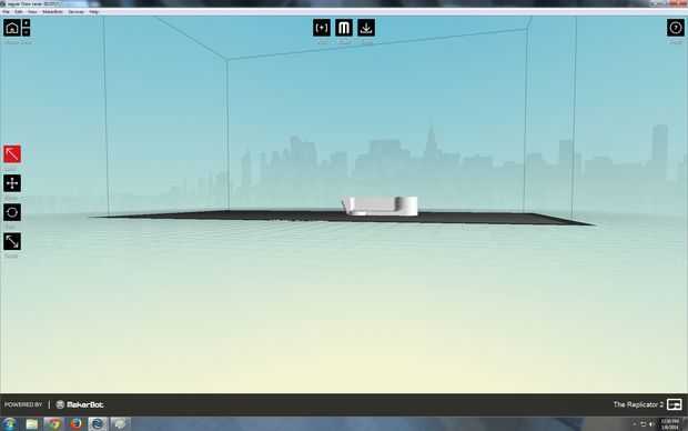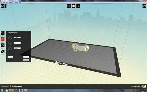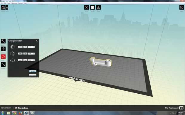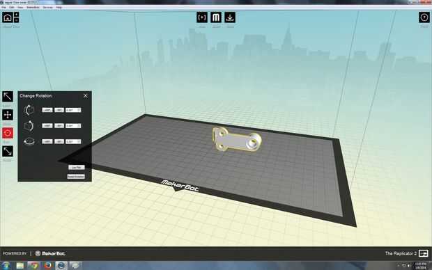 Por alguna razón cuando importa el archivo apareció a su lado. Utilizando las herramientas "Rotación" en el lado izquierdo de la pantalla fue girado 90 grados y poner el plano y en contacto con la placa. En este paso puede ser hecho para moverse alrededor de la placa más cerca a las otras esquinas ya que algunas zonas de la cinta pueden dañarse en el centro donde todo el mundo pone sus partes. También es muy importante que la parte está en contacto con la placa y no suspendido en el "aire"