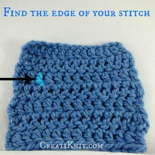 Encontrar el borde externo de la puntada. Esto es donde usted comenzará a medir.