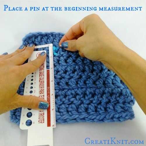 Paso 8: Coloque la marca de inicio de tu regla en la parte superior de la puntada (fila) y coloque un alfiler para marcar