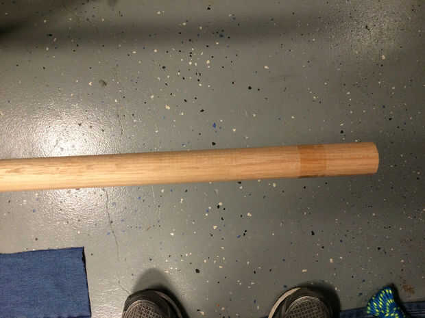 -Un pasador de madera una pulgada de diámetro y aproximadamente seis pies de largo