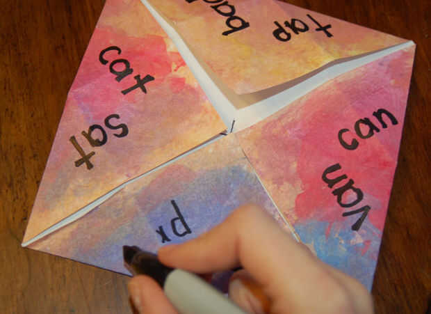 Después escribimos "exterior" o "un medio" palabras, abrió nuestro colector de cootie y rellenar el resto de las palabras: malo, cat, sat, cojín, rap, van, puede y tap.  Ahora hay 12 combinaciones de corto, una palabra para sus hijos a utilizar para practicar sus habilidades de lectura y motor al mismo tiempo!  Aquí están algunos otros recursos para la enseñanza de su niño a leer.